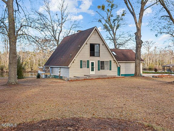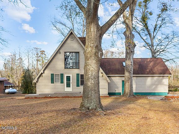 If you appreciate gazing at nature and wildlife this is the home for you. An extra large lot located on picturesque Tranter Creek where wildlife abounds. This A-Frame home faces Tranters Creek with a wall of glass windows and doors. The home also has an amazing oversized deck for extra living and entertaining space during the many warmer months that NC has to offer. The home currently offers 2 bedrooms with one bathroom, however there is a bonus room over the garage that is not heated or cooled and could be finished off to create and extra flex space. The home has one bedroom on the main level and a second bedroom on the second level. The living and kitchen area are totally open area with cathedral ceiling, a fireplace, and expansive view of Tranters Creek. On the side of the property there is an old buildig that was used at one time as a store. The building does not appear to be structurally sound, but if repaired could make a great flex space for any hobby you desire. Who knows, maybe even a bait shop. The location allows for easy access to Washington and Greenville. Shared DRIVEWAY