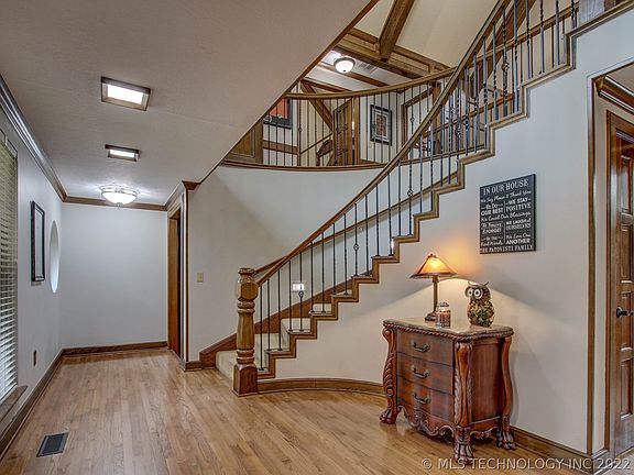 STUNNING! Cul-de-sac, wooded .80 acre lot - Jenks SE Elementary - mature trees, 4 or 5 bedrooms, 3 fireplaces, game room, formal dining, study, flex room, 40,000 gal. Fiesta gunite pool w/slide & diving board. Don't miss this one.