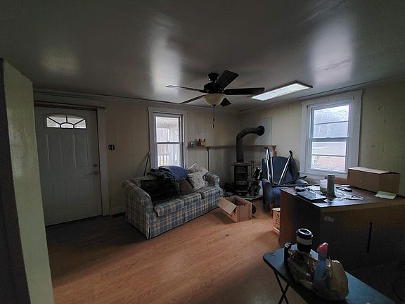 Two bedroom ranch w/lots of potential on 0.79 acres offers newer roof, furnace, & HWH, big front porch, laminate flooring, large eat-in kit, spacious living rm w/amish wood stove, and large laundry rm w/walk-out to sun rm. Two 2 extra BR & study in garage conversion. Two sheds & greenhouse in back yd. Sold AS-IS, where is. Needs rehab/renovation.