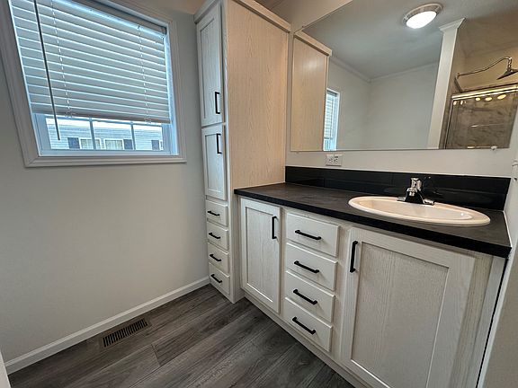 This is a three bedroom two bath porch model home. It offers a kitchen open to the living room as well as the dining room with built in buffet. The kitchen has a large island for additional seating, all appliances included, primary suite is on the back of the home offering high-top vanity, closet, and walk in glass shower. You will have recessed lighting through the home, outdoor storage shed, and many other beautiful features. APPLY ONLINE TODAY, FOR YOUR PREAPPROVAL.