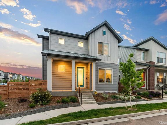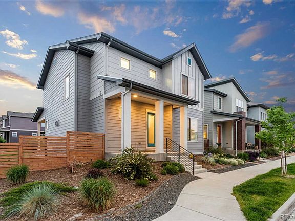 Update: Offer Received. Please have your Agent reach out if you are interested in the property. Tah-Dah! Thatâs the sound youâll hear and feel when you step foot inside this truly masterful home on an oversized corner lot just 10 minutes from Downtown Denver! The Colorado Contemporary style is epitomized in the cozy fireplace feature wall: a deep serene blue with a rustic wood mantel. Plantation shutters throughout add an elegant, timeless appeal. The kitchen is appointed with classic white subway tile backsplash, stainless steel appliances, and upgraded cabinetry centered around a large granite island. French doors lead to the study, affording a stylish space to concentrate for those work from home days. The master retreat is a space to unwind. A sliding barn door leads to the spa-like ensuite master bath featuring a granite double vanity, shower, and large soaking tub. A huge walk-in closet offers plenty of storage. And wow, the newly finished basement is spacious, open, and full of possibilities! You'll love the exquisite attention to detail with the bathroom hardware and double sliding barn door closet in the bedroom/flex space to mirror the design of the master. Ring Door Bell. Radon Mitigation System. Energy Star Certified! Ideal location close to bike path, parks, bakery & brewery, & light rail! The brand-new Trailside Academy K-8 school is now open! Donât miss the chance for a truly artisan home in the BEST planned community in the Metro Area!