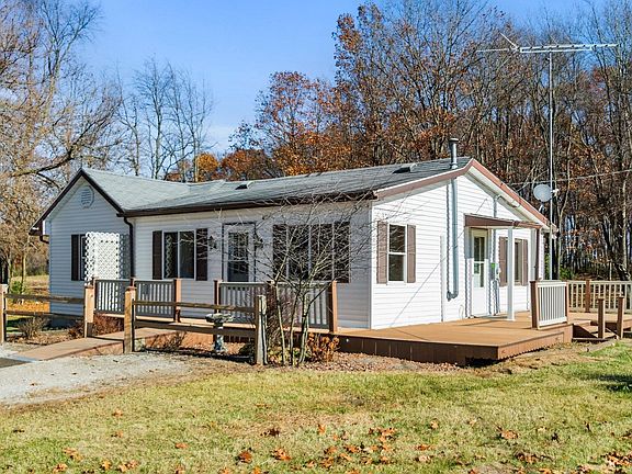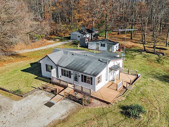 Discover the charm of this Howe property. Nestled on 2 acres with a partially wooded lot adorned by mature trees. This cozy 2-bedroom home boasts a fully updated bathroom, while the eat-in kitchen showcases new cabinets and countertops. Off the kitchen is a great storage space that could easily be converted into a mud room. Stay comfortable year-round with the new 4-head ductless heating and cooling system. More upgraded include NEW 200 amp service and new carpet in the bedrooms. The home is surrounded by a handicap accessible, wrap around deck. The detached 2-car garage features an epoxy floor, a convenient side door for easy access to outdoor equipment, and a spacious second level for ample storage. Enjoy the expansive yard, perfect for entertaining, bonfires, or a game of horseshoes. Additional outbuildings offer ideal spaces for a she shed or man cave – making this property a haven for both relaxation and recreation. Welcome home to tranquility and possibilities!
