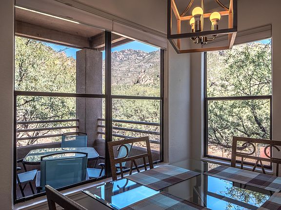 Private 2nd floor fully furnished condo overlooking the Ventana Canyon Trail in the resort style community of Canyon View At Ventana Canyon. This Northern Tucson condo features an open floor plan with an abundance of natural light, spectacular Catalina Mountain views, covered patio, primary suite with walk-in closet, dual sinks in bathrooms, washer/dryer in condo and a convenient location near shopping, restaurants, hiking and world class golf & tennis. The Canyon View Condos include two heated pools & spas, business center, two spacious clubhouses, bbq areas, tennis court, exercise facility and professionally landscaped grounds with lush desert vegetation. CALL FOR SEASONAL RATES AND AVAILABILITY