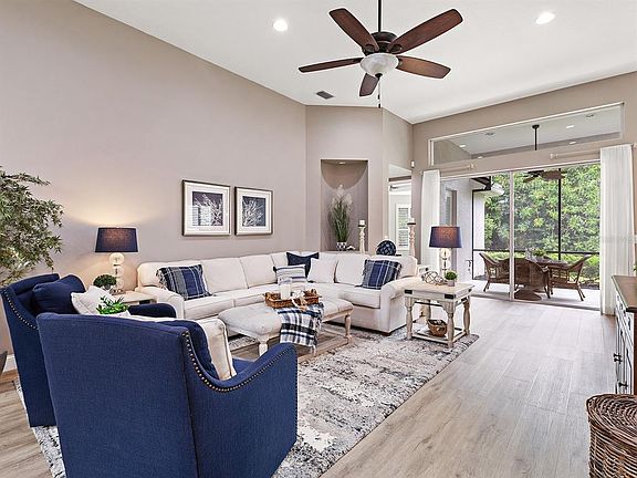 Under contract-accepting backup offers. Welcome to this meticulously cared-for, fully furnished residence in the prestigious Lakewood Ranch Country Club, a blend of luxury and comfort. Built by Neal Homes, this stunning property showcases quality craftsmanship and thoughtful design throughout. Featuring a new tile roof (October 2025), new interior paint and refreshed landscaping, this home exudes a fresh, move-in-ready appeal. The home features an open concept floor plan that blends the living room, kitchen and dining areas, ideal for entertaining or everyday comfort. The chef-inspired kitchen is the heart of the home, featuring a gas range, stainless steel appliances, a breakfast bar and a casual eat-in dining space, along with a formal dining area for special gatherings. Throughout the home, luxury vinyl flooring provides a cohesive look that’s stylish and durable. Soaring 12-foot ceilings enhance the open feel and fill the living spaces with natural light, creating an airy, welcoming ambiance. This home features three bedrooms, two baths and a versatile den or fourth bedroom. The den, framed by elegant solid French doors, showcases custom built-in bookshelves and a large window with plantation shutters. It is the ideal space for reading, relaxing, or hosting visiting family and guests. The spacious primary suite serves as a private retreat, featuring oversized windows adorned with plantation shutters and a wood-framed glass door that opens directly to the lanai. This room also includes dual closets, and an updated spa-like bath featuring split vanities, a soaking tub, and a walk-in shower. Two generous guest bedrooms share a beautifully updated bathroom, and this guest space can be conveniently closed off with a pocket door for added privacy. Recent updates include a new washer and dryer (2023), new kitchen range (2023), new microwave (2023), refrigerator (2022), and dishwasher (2021), ensuring modern convenience and peace of mind. Step outside to the screened lanai, where you’ll enjoy serene views of a private, picturesque preserve lot, the ideal backdrop for morning coffee or evening relaxation. Grounds maintenance is included, offering an effortless lifestyle. Residents of the Spyglass community enjoy access to a heated pool, hot tub and inviting sitting areas. Beyond the gates, Lakewood Ranch Country Club offers world-class amenities including championship golf courses, tennis and pickleball courts, a 24-hour fitness center, and a vibrant calendar of social activities. Lakewood Ranch also offers miles of nature and bike trails, parks, top-rated schools, medical centers, and the lively Main Street and Waterside town centers with events, shopping and dining. All this, just minutes from Sarasota’s arts and cultural attractions, three airports and award-winning Gulf Coast beaches.