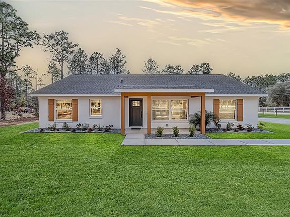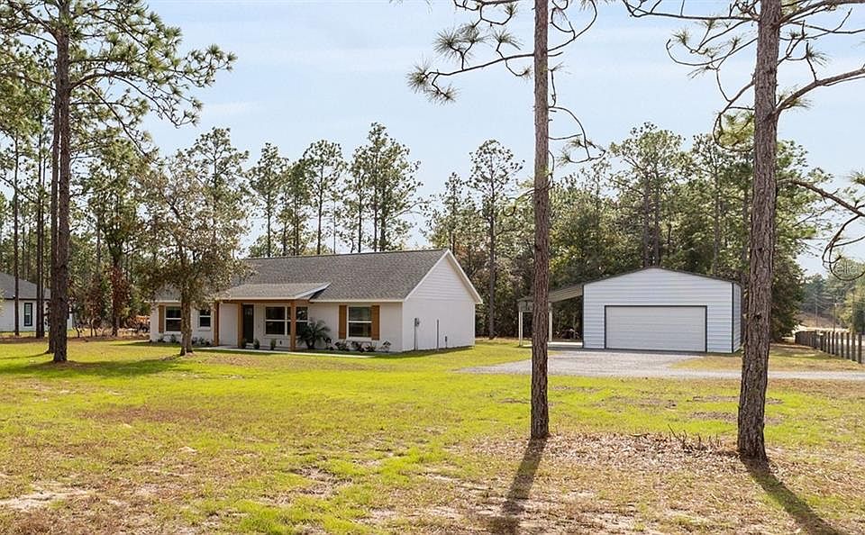 Enjoy one acre of peaceful country living in Rolling Hills, one of Marion County’s most desirable large-lot communities. This beautifully appointed three-bedroom, two-bath home showcases modern farmhouse finishes and sits on a prime corner lot that provides exceptional privacy, a charming farm-like atmosphere, and the quiet setting you’ve been hoping to find. The property offers two gated access points for added convenience. Inside, the open and versatile floor plan features newly upgraded luxury vinyl plank flooring, fresh interior paint, high ceilings, abundant natural light, and a timeless neutral color palette. The gourmet kitchen is a standout with solid wood soft-close cabinetry, granite countertops, stainless steel appliances, a striking wooden range hood, a walk-in pantry, and a spacious center island perfect for cooking and gathering. The kitchen flows seamlessly into the living and dining areas, where glass-inset French doors lead to an expansive backyard ideal for outdoor living, gardening, recreation, pets, or planning a future pool or additional structures. The generous owner’s suite offers a peaceful retreat with a spacious double walk-in closets and an ensuite bath featuring a large double-sink vanity and a glass-enclosed walk-in shower with tile surround. An impressive 900-square-foot detached two-car garage with electric service, garage door opener, and carport combo provides endless possibilities, whether you envision a workshop, studio, or future guest space. Located on a quiet paved street, this property offers both comfort and privacy, and the freedom to create what you need. This location also places you conveniently between Ocala and Dunnellon, giving you easy access to some of the area’s best outdoor recreation. Enjoy camping, hiking, bicycling, fishing, wildlife viewing, and tubing on the crystal-clear Rainbow River, all just a short drive away.