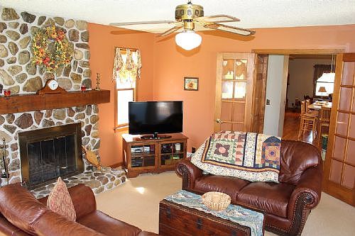 Lovely 4 bdrm, 2.5 bath home on 6+ acres. Breathtaking private yard, a true paradise! Beautiful antique maple cabinets in kit, corian counters, hardwoods in liv rm, kit & din area. Tile flr in baths. Fam rm fieldstone fplc. Stamped conc patio, shed. C/A, Furnace & HWT 3 yrs old. 35 yr arch roof approx 10 yrs old. Call today! (Source: RES 150)