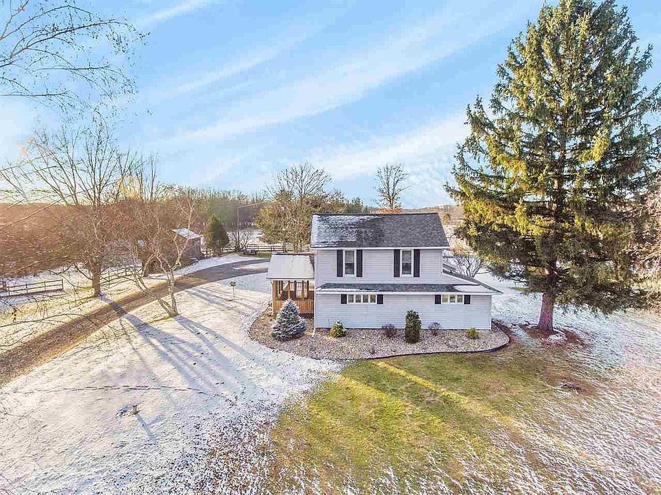 WELCOME HOME TO YOUR VERY OWN WINTER WONDERLAND SURROUNDED BY AN UP NORTH SETTING! Scenic country estate sprawling over 4 acres, featuring 2 barns set up for mini-farm & your very own, private spring-fed pond-perfect for Winter adventures of ice skating, ice hockey & cross country skiing along w/swimming & fishing on warm Summer days! Meticulously maintained & move-in ready 3BDRM/2.5BA home w/desired updates throughout including main floor laundry & a private master wing! Relax in the beautiful master suite-large bedroom, HUGE bathroom, tiled walk-in shower, glass enclosure, dual sinks & endless walk-in closet! Kitchen appointed w/Corian counters, window sink, appliance package & dine-in seating w/the best view in the house to overlook the pond & abundance of wildlife. Screen porch & large living rm w/woodstove & newer carpet. Outbuilding/add garage w/chicken coop & walk-up 2nd floor-perfect to finish for studio, office, man cave & more! 2nd Outbuilding features 2 stalls & paddock.