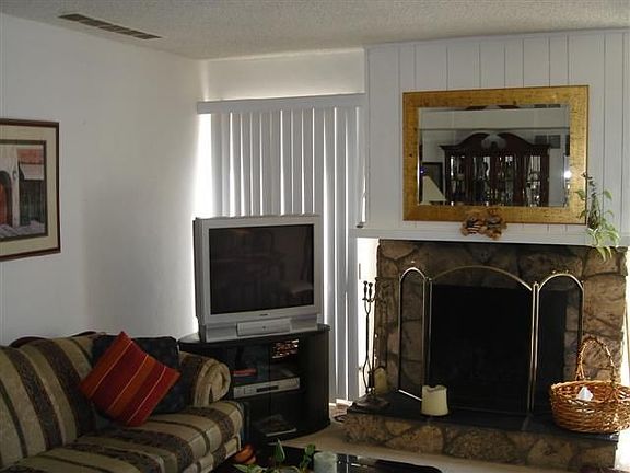 Nice 3 bedroom Family home with 2 baths. Two Story home with one bedroom downstairs. This is a end unit attached by one wall. Enclosed Courtyard entry and fenced backyard patio. 2 car attached garage with built in shelves. Separate laundry room with washer& dryer hookups and room for full sized washer and dryer. New maple kitchen cabinets installed and new porcelain tile in kitchen eating area and laundry room.The kitchen has a window over the sink, dishwasher, garbage disposal & stove. The living room has a gas fireplace. Downstairs bedroom and downstairs bathroom. All updated vinyl windows including two sliders, Two bedrooms and full bathroom upstairs. Air conditioning and ceiling fans in all bedrooms and eating area. too. Association pools and playgrounds. Great location.