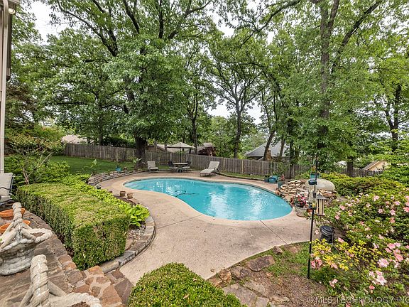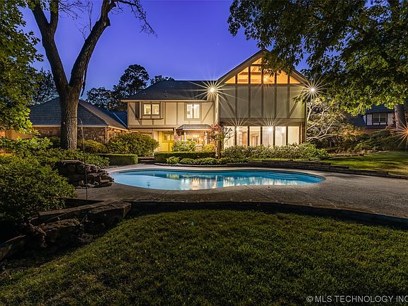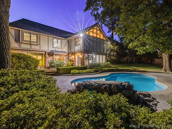 Gorgeous Custom Estate with Pool and 5-Car Garage nestled at the back of a lovely cul-de-sac on 0.7 lush acres in the heart of Jenks SE! Meticulous maintained and offering 5 flexible Living Areas, 3 Fireplaces, 2 Master Bedrooms (one up and one down), this fabulous home is truly exceptional! Visitors are greeted by the soaring Foyer and graceful curved staircase showcasing the upstairs Library. Welcoming front Living Area with fireplace and Formal Dining flank each side of the generous entry which then opens to the Family Room with stone Fireplace and large Wet Bar, Granite Kitchen, Breakfast Room and stunning Sun Room overlooking the pool and fabulous backyard. Private Master Suite on the first floor features dual closets and elegant bath with dual sinks, separate shower and tub. Completing the first floor is the huge working Pantry and Utility Room feeding to the massive 4-Car Tandem Garage boasting tons of storage, 220 V wiring plus front and back overhead garage doors. Upstairs features a 2nd Master Suite with beautiful ensuite Bath, 2 additional spacious Bedrooms, large Game Room with fireplace, Wet Bar and Library plus a massive vaulted Study with bright windows and built-in bookcases. Outside, create incredible memories around the relaxing pool and plentiful patio spaces perfectly framed by the private and stunning backyard boasting lush landscaping, mature trees and a coveted separate 5th Car Garage, or Shop! Truly a Must-See!