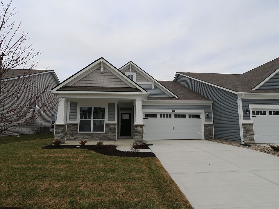 This paired home showcases 2 bedrooms, 2 bathrooms, an open-concept floorplan, and a 2-car garage. The front of this home features a large covered porch. Inside, you will find a secondary bedroom and a full bathroom. The foyer opens up to the kitchen, dining nook, and extended gathering room with electric fireplace. This kitchen includes our stainless steel appliances and a center island. The attached dining nook is great for hosting with direct access to the veranda. Back through the extended gathering room, you will find the doorway to the owner's suite. This suite comes with a private bath that includes a double-bowl vanity and a walk-in shower. Take advantage of our low-maintenance living with this home!