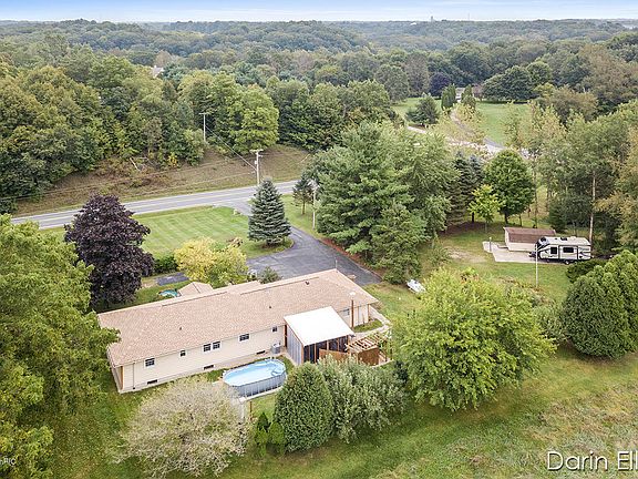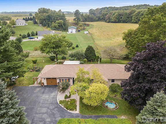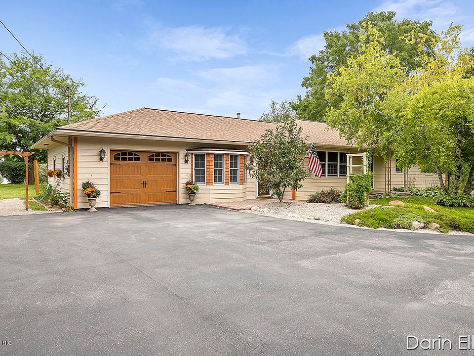 Extremely rare find in the Saranac area! 1700 sq ft, 3 Bed, 2 Full Bath stick-built ranch home on a Beautiful 2+ Acre Lot, paved rd, and just 2 minutes to I96 and easy commute to anywhere. This home has been loved, adored, and cared for by the current owners for 40+ yrs. New roof 2018, replacement windows throughout, 3 electric fireplaces included, updated furnace and C/A. Gorgeous country/modern kitchen with 36 cabinets, open stained glass , under cabinet lighting, newer appliances, butcher block center island to stay, huge pantry and more! Home has the original hardwood floors and trim throughout, All Bedrooms have large closets with adjustable built-ins. Updated baths with ceramic tile, new fixtures, flooring, Main floor laundry, etc. Huge family room with large Bay Window. 1 stall attached garage. Large screened and covered patio area. 10x20 storage shed with RV pad. Professional landscaping and fruit trees galore...must see property! Hurry to show!!