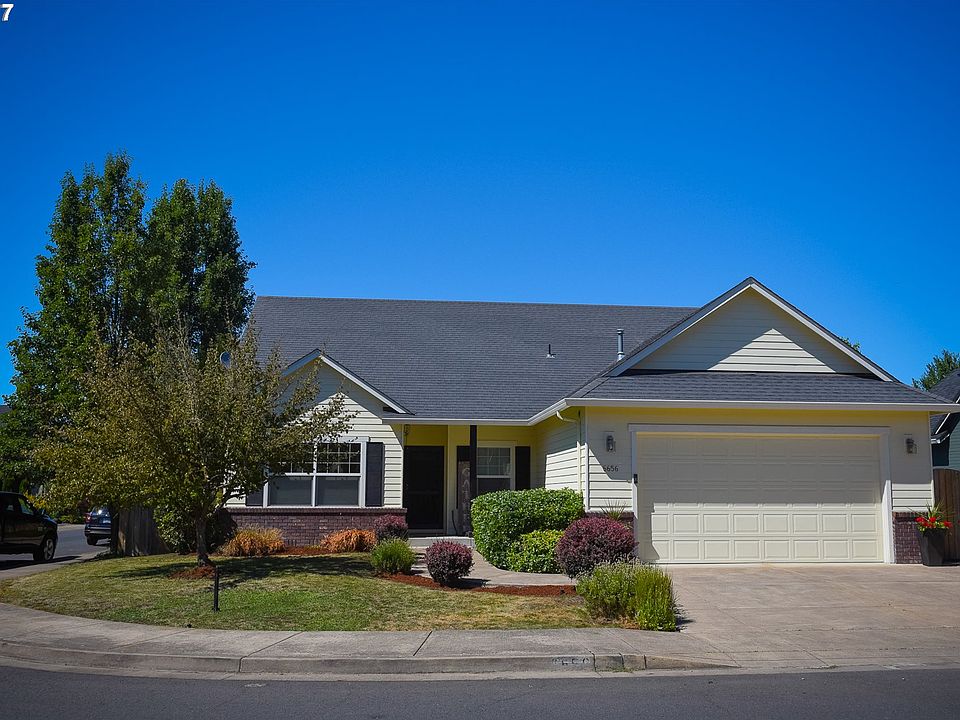 Single level home on corner lot located in Levi Landing now available! Family and living rooms with vaulted ceilings. Kitchen also vaulted; open to dining area and living room. Warm up your winter evenings w/ a double sided fireplace shared w/ the living room and master bedroom. Home offers so many amenities such as: indoor laundry, central vacuum system, RV Parking, u/g sprinklers and more!