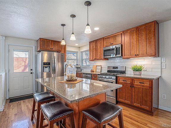Discover a home that seamlessly blends modern updates with functional outdoor spaces. The beautifully remodeled kitchen is perfect for hosting gatherings or crafting culinary delights. Step outside to your private backyard retreat, featuring a hot tub and patio, ideal for relaxing evenings or lively get-togethers. With an oversized, detached 2-car garage and an additional driveway, there's ample space for your RV, extra vehicles, or adventure toys. Upon entering the home, you will discover lots of beautiful wood flooring. The kitchen features handsome wood cabinets, quartz counters and stainless appliances. There is a spacious dining room next to the kitchen as well as an additional sitting area with energy efficient gas stove. As an added bonus, there is main floor laundry to anyone not wanting to haul clothes up and down the stairs! The primary bedroom has a beautifully updated 3/4 ensuite bath. There are two secondary bedrooms on this level as well as a nice main bathroom. The finished basement is very bright and features a large recreation room and bedroom. Great central Arvada location with great access to Olde Town Arvada, the Light Rail station and easy access to I-70. Getting to downtown, the ski slopes and DIA are easy and convenient as is the proximity to local shopping and dining options. You won't find a better cared for or loved property where the updates were lovingly and carefully crafted as opposed to throwing it together for a quick sale. Located near Secrest Park, you’ll enjoy easy access to green spaces, playgrounds, and recreational opportunities. This home offers both convenience and a lifestyle designed for enjoying Colorado living to the fullest. Welcome Home!