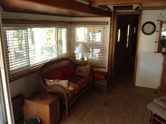 (Pending Sale @ over asking price) Bargain Price! New dual pane windows with lifetime screens in 2012. At the same time, new paint, carpet & vinyl plus custom blinds and Oak Deco fireplace. Very flexible floor plan with dining area in kitchen. Loads of cupboards & storage. This is a very comfortable home with 2 Bdrms or 1 plus office in 55+ senior park in a nice serene setting. Being sold partly furnished. Close to everything. Rec Room & Pool available. Space rent provided is monthly average and includes utilities; water and trash. Call or drive by as Park Mgrs. have a key to show you this home (530) 877-4254 or call the owner @ (530) 872-1211.