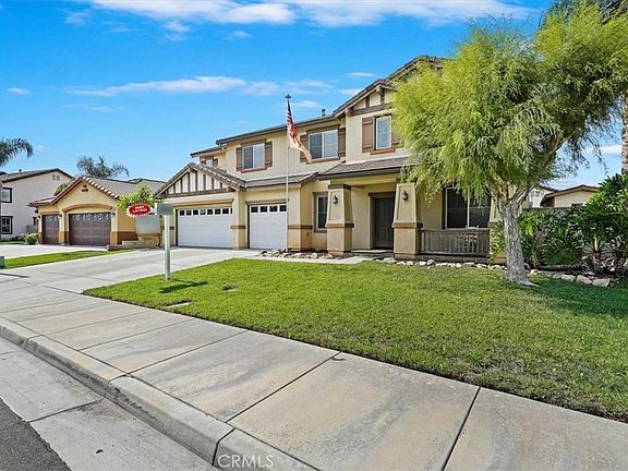 Very spacious Eastvale home in the sought after Country Springs neighborhood. This John Laing Home features five very spacious bedrooms, and a three car garage. Upon entry the formal living room is to the right and formal dining room to the left, connected to the kitchen through the Butler’s pantry and walk-in pantry area. Kitchen boasts a large eat in area as well as breakfast bar island. Lots of storage throughout. kitchen opens to family room with fireplace and built ins. A large private bedroom, full bath and large laundry room complete the downstairs living space. Upstairs a large loft/ game room area with built-ins, three additional large, secondary bedrooms, all with walk-in closets, and a jack and Jill bathroom with two separate vanity areas. Spectacular Master suite boasts, double door entry. Enter into a sitting area next bed area with area for coffee or bar. Master bath with separate vanity areas and a huge walk-in closet. Lots of custom base and crown molding, recessed lighting, and coved ceilings throughout the home. Absolutely beautiful backyard entertainment area with custom well built patio with built-in barbecue and outdoor kitchen. Lots of custom work, such as stamped concrete, custom planters a big storage workshop to the side yard. Backyard is all enclosed with a block wall. With a few final touches to this house, make it your Home Sweet Home!