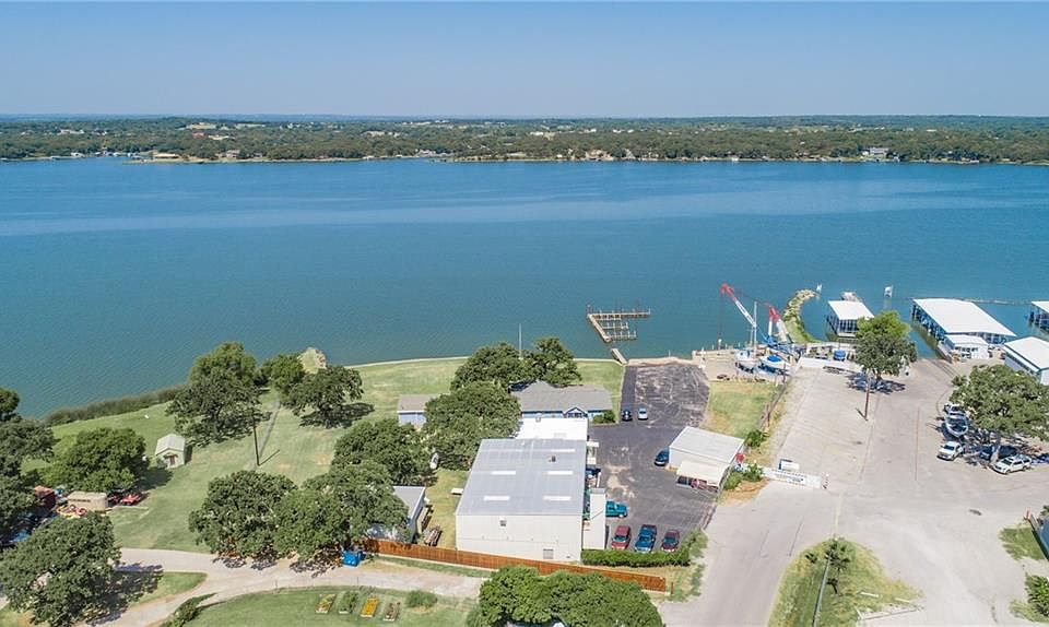 One of Eagle Mountain Lake's Iconic properties for over 43 years. Multi-use with 2000+ sqft. residence, 8000 sqft 2 story operational warehouse, EML's only active large boat utility crane (30 ton), 1.7 acres & almost 400 ft of waterfront on an active part of the lake. Known for decades as Slaughter Marine this well loved lake family served the lake patrons at this location passionately since 1976. Multiple options available for new owners. Marina next door, Ft. Worth's best hiking park up the street, 'Peaceful Easy Living' & spectacular sunsets make this the granddaddy of all EML properties available. With your passion for lake living and your business skills, this will surely be the experience of a lifetime.