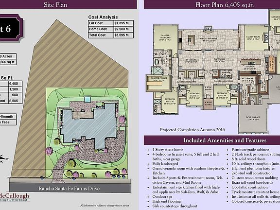 Gorgeous Brand New Single Story in the heart of RSF. Construction to start 2/1/16. Pre-sale for a masterfully designed 6405 sq. ft. beautiful estate home on view lot in the prestigious RSF Farms Estates. 4 BD/plus guest suite, 5 full BA, 2 half BA and 4 car garage. Covered grand veranda room, fire place, outdoor kitchen and spa. High-end amenities Wolf, SubZero and Asko, slab countertops throughout along with 8ft. solid wood doors and 10 ft. ceilings. Fully landscaped-ready for your personal touches.