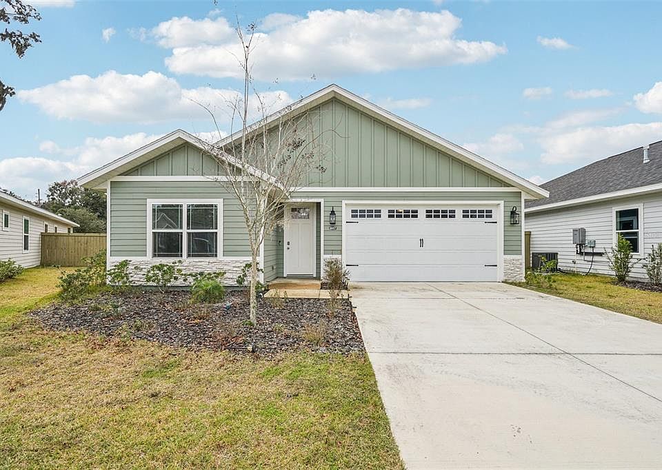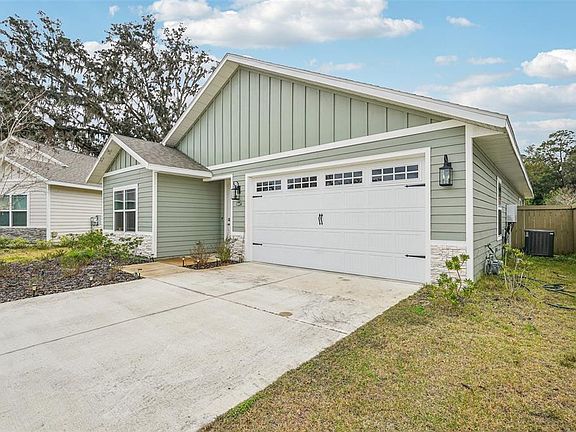 Welcome to this nearly new 2023-built home in the highly sought-after Grand Oaks at Tower community! This modern 3-bedroom, 2.5-bath residence offers 1,760 sq ft of bright, open living space with stylish upgrades throughout. Enjoy a spacious kitchen featuring stainless steel appliances, a large island, tray ceilings, and crown molding that elevate the home’s clean, contemporary feel. The primary suite provides a peaceful retreat with private access to the screened-in lanai, a walk-in closet, and a spa-like en suite bathroom with dual sinks and an oversized glass shower. Two additional bedrooms share a convenient Jack-and-Jill bathroom—perfect for guests or family. Step outside to a fully fenced backyard and relax year-round in your screened-in lanai. Additional highlights include a new washer & dryer, transferable solar lease for energy savings, and access to the community pool and amenities. Located minutes from UF, major highways, shopping, restaurants, and top-rated schools, this home combines comfort, style, and convenience. Move-in ready and priced to sell—don’t miss this opportunity! Mortgage savings may be available for buyers of this listing.