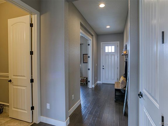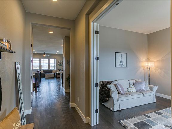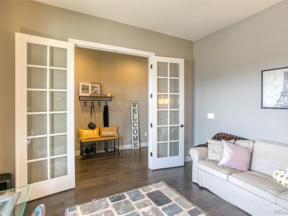 This beautiful ranch in Pinery West is everything you want: gorgeous and comfortable main floor living with 10' Ceilings and 8' Doors, wood Floors, tasteful and private outdoor living including a hot tub where you can enjoy the magnificent sunsets and views of Pikes Peak. Everything you need is on the main level: gourmet Chef's kitchen with upgraded appliances, 5-burner gas range with convection oven, roll-outs, soft close cabinets and drawers, SS farmhouse sink and much more; walk-in pantry; Open concept floor plan with surround sound in Great Room, ceiling fans, and incredible finishes. Main level Master Bedroom has new carpet, walk-in closet with Custom Closet Organizer and a door directly accessing the backyard deck. The Master Bathroom has an upgraded walk-in shower with a bench and dual sinks; your Office/Study is on the Main Floor with a Powder Room close by! Downstairs the fun begins with a huge finished extended media/flex room/exercise area, pre-wired for surround sound and Two additional bedrooms with 3/4 bathroom. Outside is delightful with a Covered Deck, fully landscaped yard with landscape lighting throughout, pre-wired for outdoor speakers, a beautiful Hot Tub and extraordinary views as you back to open space. One of the few homes in this area to have a large private yard with plenty of space between neighbors as one side yard abuts to a common area. There's a plethora of storage downstairs in the basement and numerous closets. Or, that storage area is large enough for a 4th bedroom and has a rough in for another bathroom. Other plusses: Gated Community, HOA takes care of front yard maintenance/snow removal and the unobstructed south facing view of Pikes Peak will WOW you! Enjoy maintenance free living in Parker! The property backs to 38.5 acres which is privately owned and zoned agricultural.