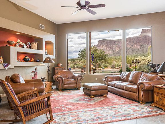 Territorial-style custom with view . 4BD/2.5BA (split bedroom wings). Front courtyard, rear-view deck, fabulous saguaros & other native planting, solar heated pool & spa, fireplaces (in&out), media rm. $789,000. SOLD!
