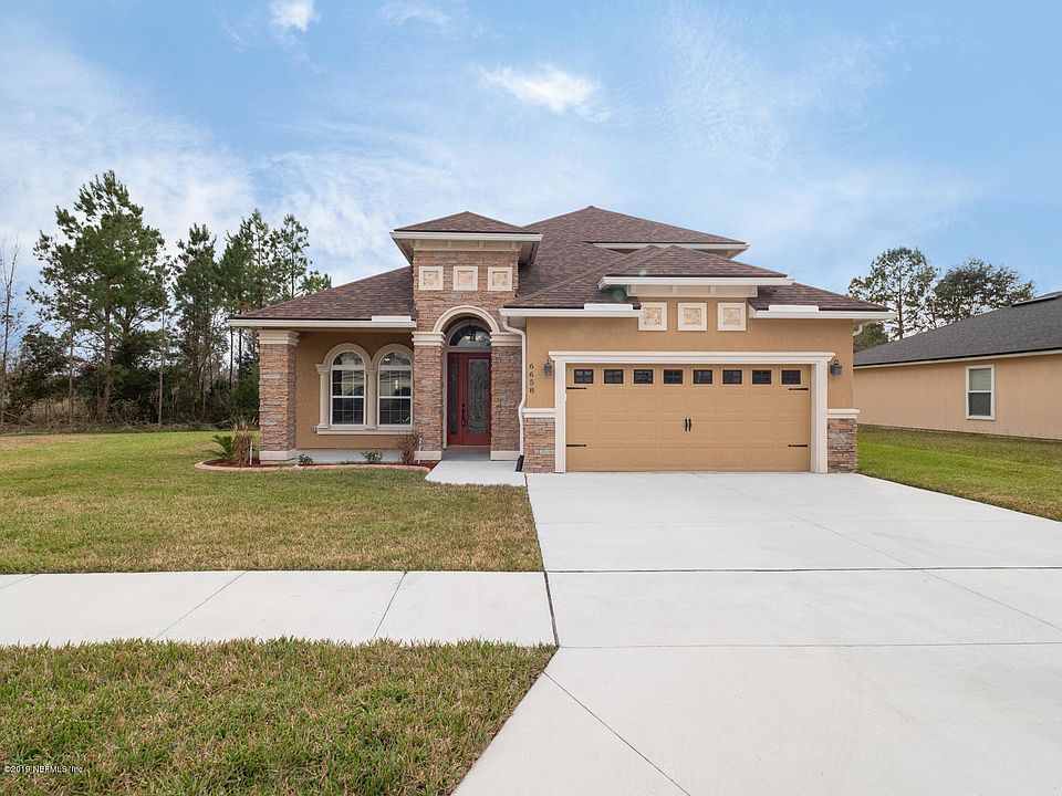 Brand New Construction on Trout River! 4 Bedroom, 3 Bathrooms plus Bonus & 2603 Sq Ft! Stacked stone accents & arched windows. Inside you find Coifered ceilings in the front room that can be used as the Formal Dining Room or Formal Living Room. Luxury Vinyl Tile cover the floors in the main living areas. The Kitchen has all of the modern upgrades including Granite counter tops, island with breakfast bar, tile backsplash, pantry closet and loads of cabinet space. Master on Main with trey ceilings, walk-in with custom closet System. Master Bathroom includes double vanities, garden tub and huge walk-in shower. Two additional bedrooms are downstairs that share a bathroom and separate room dedicated to laundry! 4th Bedroom upstairs with (more full bathroom and Bonus Area! Enjoy the view of the River all year from the screened back porch. A pavered pathway leads to the dock with water capable of sustaining a 21 foot boat. Wonderful, friendly neighborhood, conveniently located near schools, shopping & downtown Jacksonville.