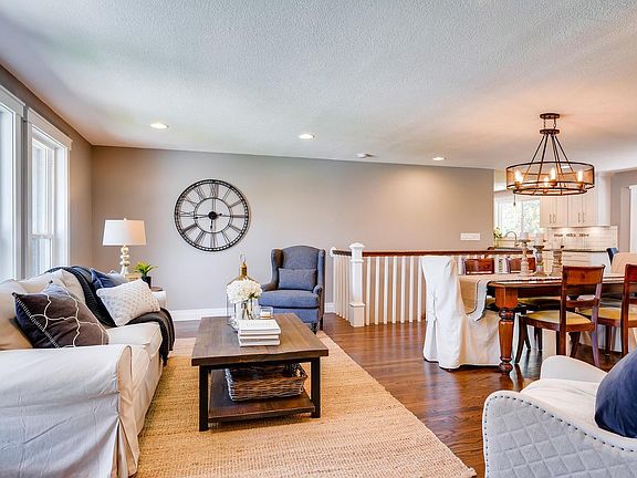 This is a must see 4 bedroom 4 bath ranch house! If you are looking for a completely remodeled house this is the one for you. EVERYTHING has been updated in and out with high quality finishes and workmanship. Stunning open floor plan in the main living area with expanded kitchen from the original galley kitchen. Generous size bedrooms on main level with ample closets. Master bath has been expanded and now has a 60" double vanity. Custom trim and wood wall accents throughout. Quarts, marble and wood counters. Beautiful tile on bathroom floors and shower walls. High quality cabinetry and custom island in kitchen. New lighting, doors, hardware fixtures, windows, hardwood floors, carpet, paint, HW heater, furnace, A/C, roof, concrete, updated landscape Main floor laundry. Basement is finish and includes a 2nd family/rec room along with one of the bedrooms and bathrooms. Basement bedroom has new egress window. Many of the staging items are available for sale.