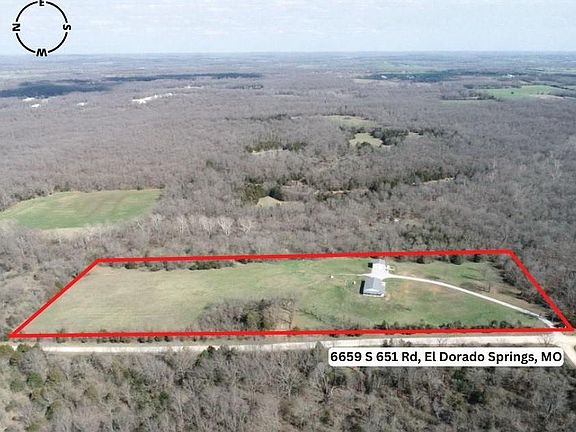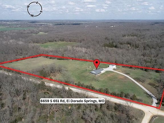 Welcome to your own private, country oasis consisting of a newer-build home, outbuilding, and 11 +/- acres of recreation and seclusion. Located just 10 minutes south of El Dorado Springs and 15 minutes north of Stockton is this 2 bed, 1 bath, 1,584 sq ft home with many outstanding features. The home was constructed just 2 years ago and boasts an open-floor concept, stunning hickory cabinets, quartz countertops, excellent bar space, wood stove, private well, amazing views, and a wrap-around front porch just made for the country evenings. There is ample storage for vehicles, tools, and equipment in the 2-car garage with bonus workspace plus the 30’x30’ pole barn with concrete floors, electric, and 10’ doors. The property is mostly open and features about 10 acres around the home where a person can fence for livestock or tend to gardens and orchards. Enjoy quiet walks, sunsets, wildlife crossing the property, and a peaceful country lifestyle. This is a must see to appreciate property, so schedule your tour soon for your private showing. *Note: Fiber internet is available at this property!*