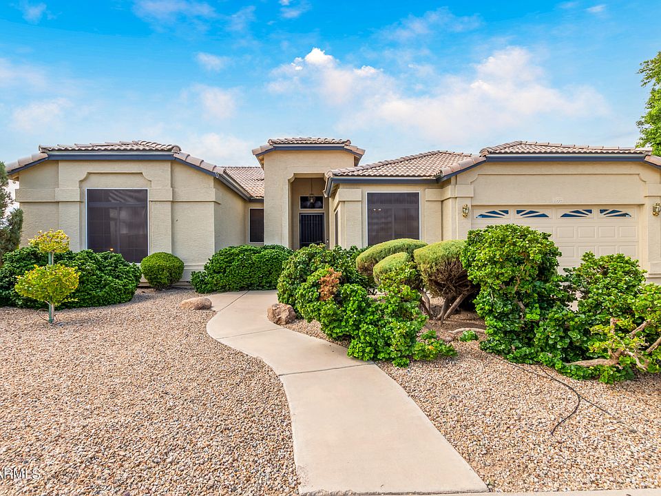 This beautiful move-in ready Mesa home sits on a corner lot inside a quiet golf course community w/ No HOA. All appliances convey including 2 refrigerators, washer/dryer & freezer. The property features a split floorplan, vaulted ceilings, walk-in closets in all bedrooms & huge kitchen/dining/laundry areas. The fully enclosed AZ room provides a great flex space whether you're looking for an at-home gym, office, or entertainment room. Some recent upgrades include new roof in 2017, new HVACs in 2018, & new flooring in all the right places in 2022. With only one neighbor, the backyard has great privacy for you to enjoy the paver patio & citrus trees.