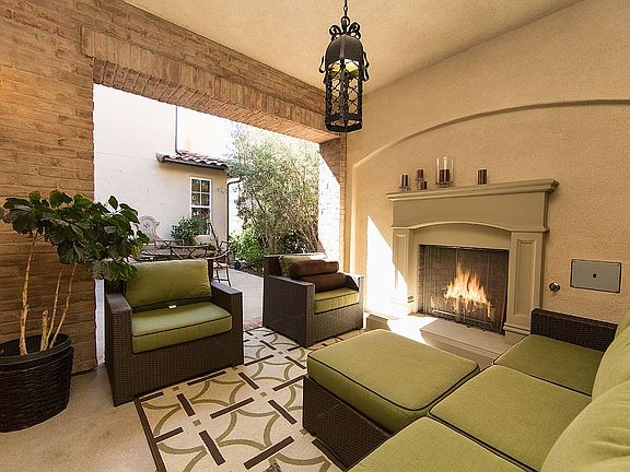 Welcome to this highly upgraded Plan 2 Viridian on premium lot with a view! The most popular floorplan , it has a tranquil interior courtyard with covered outdoor fireplace and spacious seating areas. A great/family room nothing short of spectacular with adjoining Chef’s kitchen featuring a huge center island with seating, GE Monogram appliances, upgraded granite and cabinetry. Separate formal living room looks into the interior courtyard. Additional flex space on 1st floor, perfect for breakfast room, office or gym. Upstairs loft, currently a playroom, can be built out as 4th bedroom. Large Master Suite with entry hallway and beautiful ensuite marble and stone bath with vanity, shower and separate soaking tub. Large custom closet. Two additional upstairs bedrooms with two full baths. 3 car garage and alarm system. HOA Includes membership to Presidio, a private clubhouse with fully equipped exercise facility, tennis courts, Olympic sized pool and catering kitchen. Walk to the new 40 acre Alga Norte Community Park with aquatic center, playgrounds, skate park and fully fenced off leash dog park. Please note: 4th bedroom is currently a loft that was offered as a builder optional 4th bedroom.