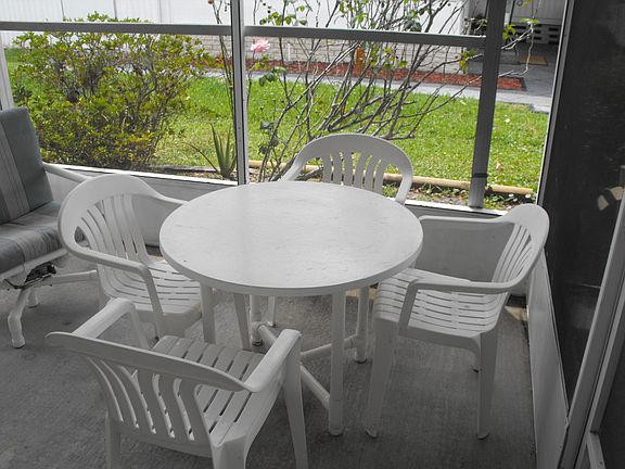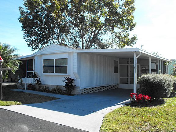 Immaculate home in gorgeous gated 55+ resort community offering golf, tennis, heated pools, hot tubs, clubhouses, lakefront restaurant and pub, gym libraries and billiard rooms. This peaceful and convenient suburban setting on the shores of scenic 900 acre Lake Henry is in the Hidden Golf Club community. It's just minutes from all services, shopping and entertainment. Reasonable monthly site rent of $445 offers affordable year-round residence or a delightful and fun snowbird getaway. This is about 45 minutes to Orlando airport and 25 miles to Disneyworld. Open floorplan with vaulted ceilings, paddle fans and sliders to lovely raised lanai, remodeled bath with walk-in shower, huge bedroom with a full wall of closets, screen room, utility shed with washer and dryer, carport. This attractive home is fully furnished including deluxe adjustable queen bed, and all appliances. Lovely lot with shade tree, palm and rosebushes. Enjoy resort living at a very affordable price!