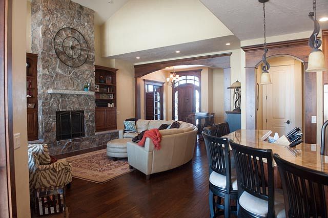Listed far below actual build cost. Custom finishes with a grand entry way, huge vaults, stone, timbers and built in woodwork everywhere including a secret passage from office into master bedroom. Electronic blinds, hardwood floors, gigantic kitchen with unbelievable views. Custom painting with incredible indoor slide and lap pool with quad doors opening to a breathtaking water feature. Radiant heated floors in master bath, swimming pool and driveway. Pull through heated garage. And More!