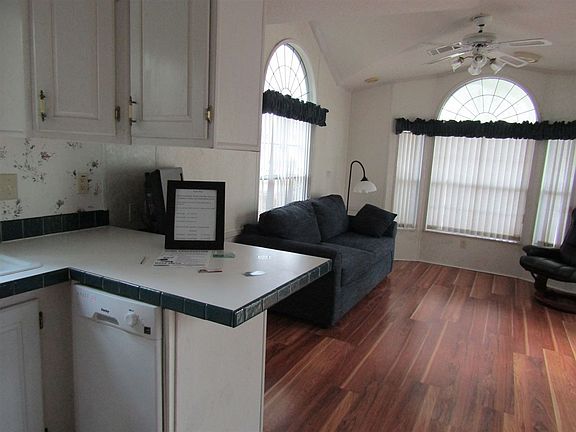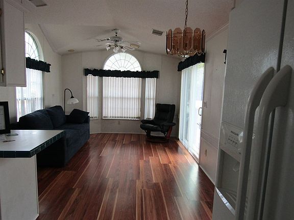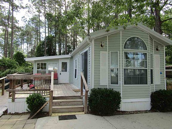 Very nice Park Model in Spanish Cove! Has beautiful new laminate floors. 12x20 Bonus room to use as extra bedroom etc. Walk in tile shower in bath. Kitchen has dishwasher. Inside washer & dryer attached to the bonus room. Large outdoor shed. Double concrete driveway. Ramp to large front deck. Spanish Cove amenities include year round pool, fishing pier, tennis courts, 2 clubhouses, excersie bldg & 24 hr security. Metal Roof 2015, New HVAC 2018, All new piping under trailer, New Floors 2020