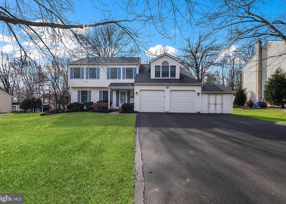Beautiful Larosa built, traditional two Story Colonial with formal entry features hardwood flooring. Formal Entry opens to Large Formal living room with oversized windows and neutral carpeting. Large cased opening flows into the Formal dining room with wall to wall carpeting and large twin window with view of the back yard. Cased entry from Dining room to Eat in kitchen features engineered flooring, stainless steel dishwasher, electric oven, built-in microwave, recessed lighting and plenty of counter space. Large eating area with slider to expansive concrete patio and deep back yard. Half wall from eating area to Family Room with neutral carpet, recessed lighting, ceiling fan and triple window inviting in the natural light. Mud room off family room with entrance to 2 car garage and convenient 1st floor powder room. Spacious second floor master bedroom suite with separate sitting room featuring triple window with Palladium window above for plenty of natural light, 2 large walk-in closets. Master bath with tile floor, tile walls and stall shower. Second bedroom with double closet, ceiling fan and entrance to hall bath with double vanity, tile flooring and tub/shower. Third and fourth bedrooms with ceiling fans and neutral carpet. Full finished basement features Berber carpet, Center Island for entertaining, large powder room and storage closet and separate unfinished area for additional storage. Large level yard with concrete slab patio and beautiful backyard. Two car attached garage, plus large storage shed in the front of house to the side of the garage. Gas heat. Central Air. Award winning Central Bucks Schools!