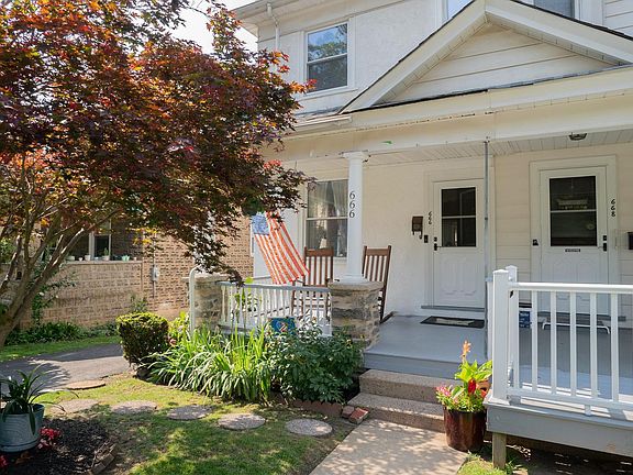 Welcome to 666 N Tyson Ave in Glenside, a lovely twin located in the Glenside community of the award-winning Abington School District. The welcoming covered porch and beautiful landscaping will greet you as you approach the property. Once inside you will be met by the open floor plan showcasing gleaming hardwood floors and an updated tile entryway. The combination of living and dining room provides wonderful space for entertainment and gatherings. The updated kitchen offers stainless steel appliances, granite countertops, and generous cabinet space. Just off the kitchen is a spacious room that is currently set up as a laundry room. The seller will provide a professional diagram for the addition of a powder room while still maintaining laundry in the above-mentioned laundry space. From this area, you will find outside access to the newly installed (2021) deck overlooking the very spacious yard with steps leading to the backyard that boasts a newly installed fence (2021) and the detached one-car garage. There is an abundance of outdoor space perfect for entertaining and outdoor activities. The second floor consists of three good-sized bedrooms and a full bathroom. The third floor offers a bonus bedroom that is currently being utilized as a home office with a spacious closet. A large basement provides an abundance of storage space and a separate storage room that houses a newer (2020) water filter and salt-based water softener system for the whole house. Other noteworthy improvements include a newer HVAC (2021), roof (2020), and water heater (2022). The location is within short walking distance of all the great places Glenside has to offer that include Keswick Village, Elcy's Cafe, Breweries, area restaurants, the train station, local parks, and the numerous festivals and parades. Just a quick trip on the train takes you into Philadelphia and a short commute to the main thoroughfares. Make your appointment today to visit this sweet and well-maintained home!