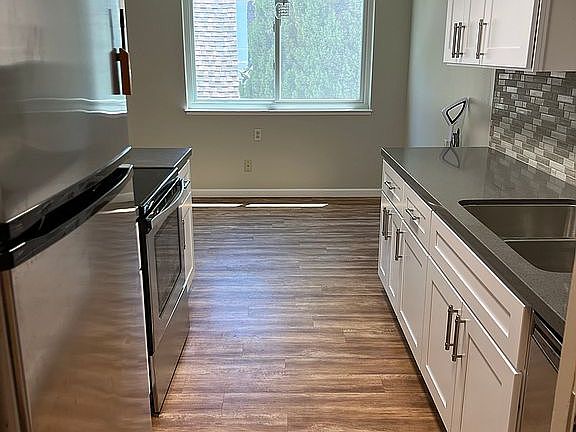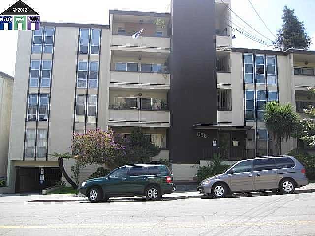 Light-filled 2bed/1.25 bath Oakland condo in 17-unit, quiet building. Wood grain, commercial vinyl and pergo flooring (perfect for pets and kids), fresh paint, recently updated kitchen with quartz countertops and stainless steel appliances, brand new windows, and private balcony. Remodeled bathroom oasis complete with whirlpool tub. Extra vanity and walk-in closet in the Master Bedroom. One parking space in secured garage. Storage locker above parking space. Coin-operated laundry room next to the garage. Building has an elevator. Close to Piedmont, Grand and Downtown areas of Oakland. Easy freeway access and public transit accessible with casual carpool and Local and Transbay AC Transit bus stops a stone's throw away. Local AC Transit bus goes to 19th St. BART station. One year lease at $3600 per month. Security deposit of $6000. Rent includes water and garbage. One well-behaved cat or dog (no size restriction) is permitted with additional deposit. No smoking or drugs.