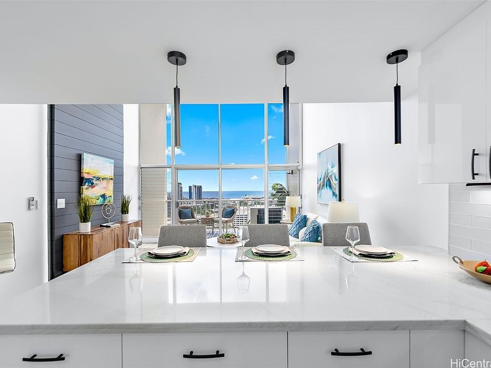 On the slopes of Punchbowl, Ka Hale Moi offers unbeatable, unobstructed ocean views from Diamond Head to the Waianae Mountain Range. This luxuriously renovated two bedroom, two bath unit has been meticulously designed for you to move right in! The brilliantly curated features exude opulence. 15 foot floor-to-ceiling windows provide maximum natural light and viewing pleasure of the ocean and city. Conveniently located minutes from Queens and Kuakini Hospitals, downtown offices, Kaka'ako restaurants, beaches, shopping, and convenient H-1 access going East and West. A recreation deck and swimming pool are provided for the exclusive use of residents and their guests. VA Approved and Pet friendly too!