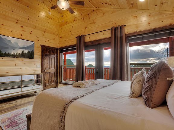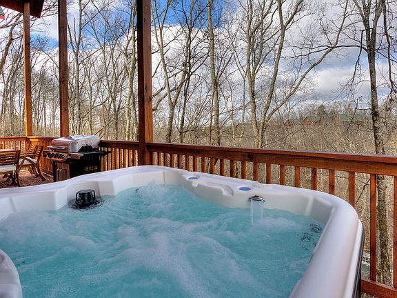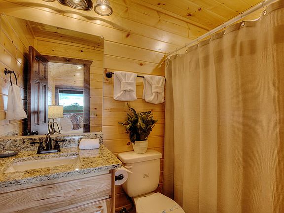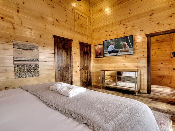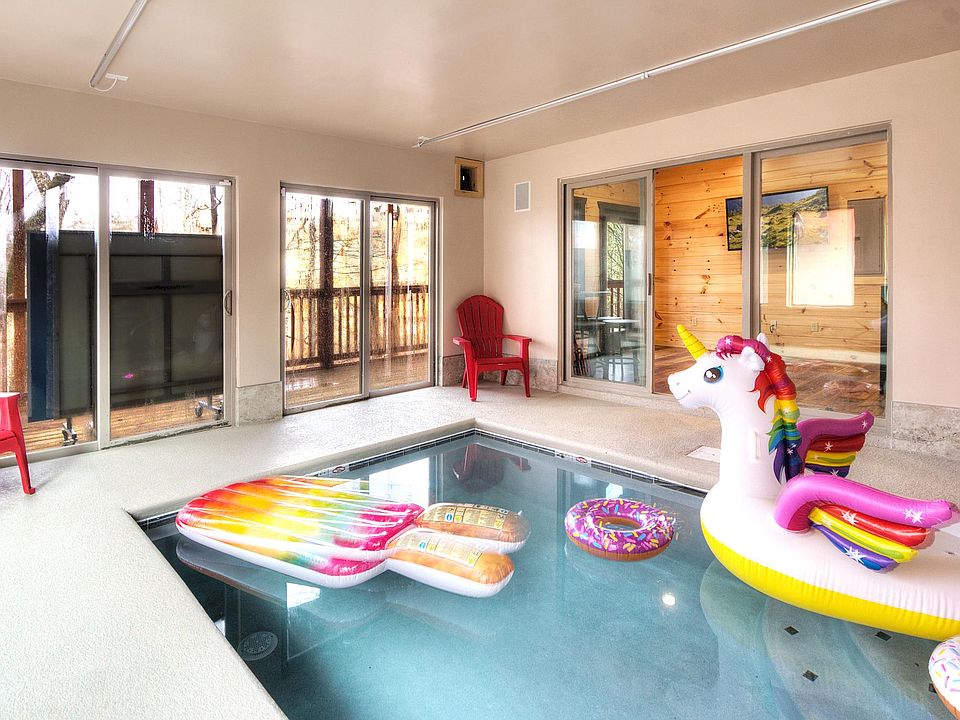 Heated indoor pool, jacuzzi, movie theater, arcade games, BBQ, washer/dryer and many TVs. 2 bedroom, 2.5 bathroom with loft area. Loft area sleeps 4 kids. Furnished month to month cabin rental!