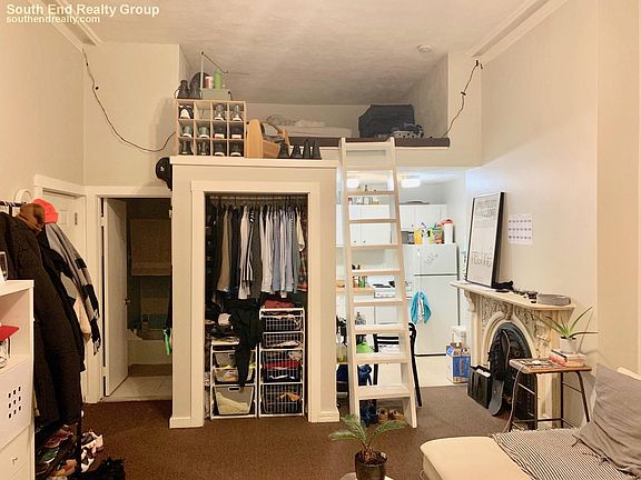 This South End studio features a kitchen with plenty of cabinet storage, counter space, full size fridge, oven, and stove. High ceilings, crown moldings, and a decorative fireplace are just some of the details that make this home ideal. The sleeping loft is spacious, and has room for a small sitting space in addition to a bed. Located adjacent to many of the South End's finest restaurants and shops. HEAT AND HOT WATER INCLUDED