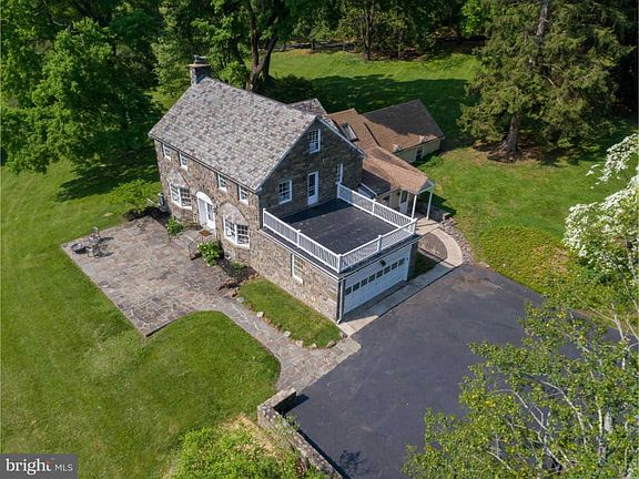 Stately Two Acre Stone Colonial features four bedrooms with two master suites, one on each floor, and 3.5 bathrooms. More than 3,300 sq ft of living space with a state of the art kitchen. Hardwood floors throughout. Spacious living room with wood burning fireplace and built-ins. Large dining room with built-ins and deep window sills. Open floor plan with a great room extending from the renovated, stainless appliance and granite kitchen. Great room includes a solarium overlooking the deck and grounds. This rare home exudes character and charm. The first floor master suite includes two distinct walk-in closets and a slate and glass, two sink bathroom with granite counters. The second floor master suite has a large private sundeck. Large basement with shelving and two separate attics provide an abundance of storage space. This home includes two additional buildings, a potting shed and an artist studio mini-barn. With stunning views, the home sits atop one of the highest points in Delaware County. Three zone cooling and four zone heating. Conveniently located to Media, Philadelphia, Wilmington and Main Line. In highly sought Rose Tree Media School District.