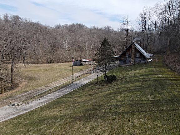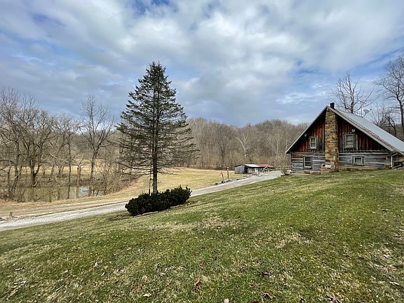 Check out this one-of-a-kind cabin retreat built as a year-round sportsman's paradise! From the main road you can see the pine covered bluffs of Kentucky as the mighty Ohio river flows through the valley less than a mile from the property. The log cabin home is all handcrafted using stone and logs obtained from the property. Sitting at the end of a dead end road, this 2Bd/2Ba log cabin serves well for a primary residence or a comfortable getaway retreat. The timber framed great room offers high ceilings, large picture windows, and a loft that could be used as an additional sleeping area. Imagine sipping coffee here next to the warm fire while watching the deer and turkey feed across the valley below. There are several outbuildings and sheds that provide plenty of room for equipment, tools, and toys. This property has been set up with a well-established trial system that winds the hillsides providing access to most all areas. Pockets of big mature timber can be found throughout the property as well as thicker groves of cover that provide bedding for the deer. Thanks to Blue Spring Beling located on the property, a year-round river flows across the property and out to the Ohio river not far away. The property also has an approx. ¼ acre pond to enjoy and stock as you wish. As if that's not enough, the property also backs up to nearly 900 acres of Harrison-Crawford State Forest; offering direct access to the state lands' abundant wildlife populations. This truly is a property for the four-season outdoor enthusiast/generalist. If you've ever dreamed of having a property where you could truly chase whatever is in season, then this is the property for you. From fishing to wing-shooting to big game hunting and trapping...this property provides a bountiful harvest. Give us a call today for your private showing.