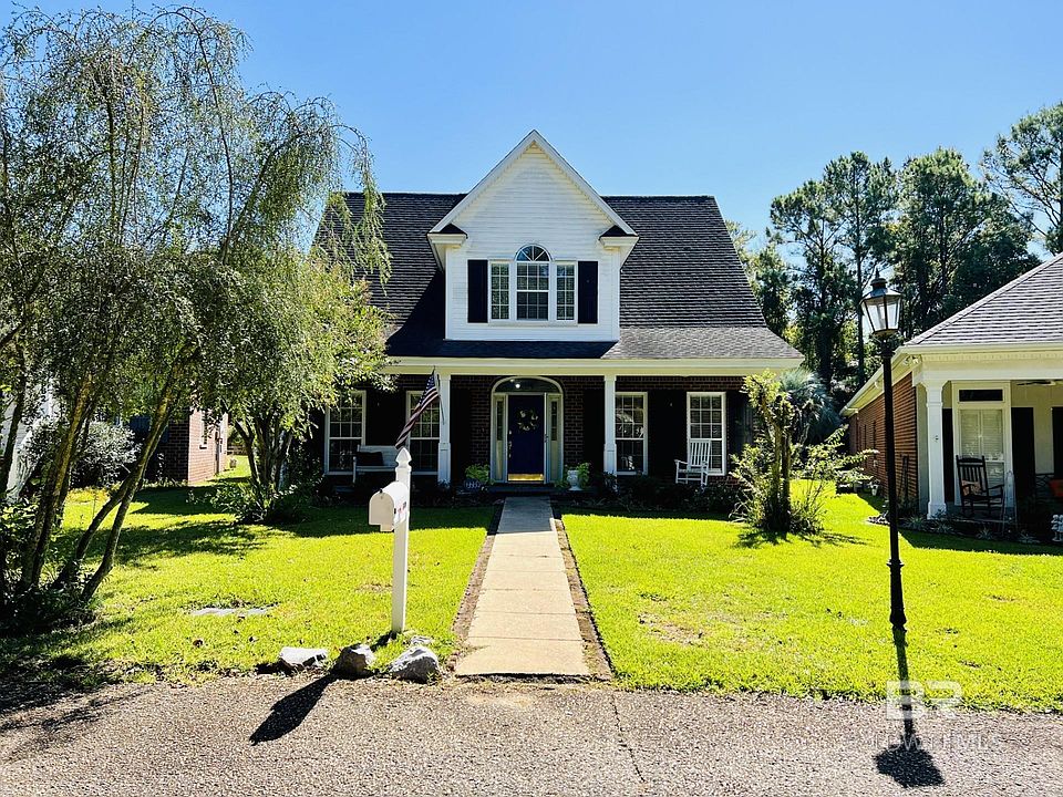 Lovely brick creole cottage nestled within a picturesque cul-de-sac lined with Live Oaks and gas lanterns in a coveted area in Daphne that is Jackson Square. Newly remodeled white kitchen featuring painted soft-close cabinetry with quartz countertops made by a local cabinetmaker, Bosch induction range, Sub-Zero refrigerator, & Bosch dishwasher. Hickory wood flooring throughout the main level along with split brick flooring. Primary bedroom on the main level with en suite beautifully remodeled for aging in place. Enjoy your morning in the sunroom off the living room. Guest bedrooms and bath upstairs with luxury vinyl plank. New HVAC unit with ducts along with a mini-split HVAC unit in double garage for crafts, office, or woodworking. Bring the gardening gloves to maximize the joys of this wonderful garden spaces hugging the home from the front yard to the back-alley driveway. Perfect location between Village Point Park Reserve and the Daphne Public Library.