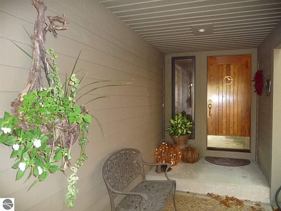 Spacious condo in popular Port of Old Mission that lives more like a single family home. This was the developer's personal home with many amenities and custom extras. Wonderful screen porch off dining room, seasonal East Bay views, stone paved patio, classic vaulted 10' ceiling in family room, 2 fireplaces, main floor laundry. Attached garage plus one detached garage. If you've thought about POM before, this is an incredible opportunity to own one of the best.