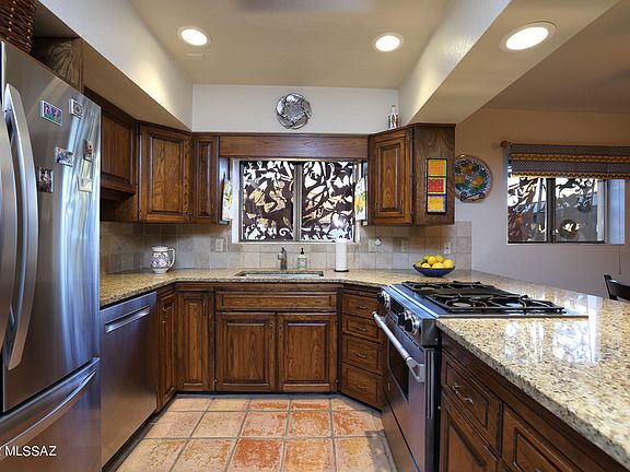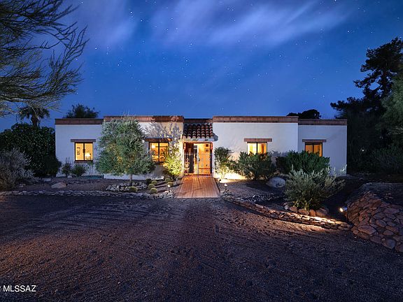 From the moment you arrive at this stunning Tucson territorial home with remarkable curb appeal, fabulous city views, elegantly updated kitchen, and private backyard oasis with 2 covered patios and free form pool this entertainers delight will make you feel you're at home. The spacious living room, formal dining room and den are all accentuated with classic Saltillo tile whilst the bedrooms and office boast hardwood floors. Master has city views, a lovely new walk in shower and deep closet. Office sports nice wood built-ins with desk and the guest bedroom has a built in Murphy bed. You'll appreciate the two car garage with a great storage room and extra parking under the additional 2 car carport. Don't miss out on the opportunity to make this gorgeous Foothills house your home.