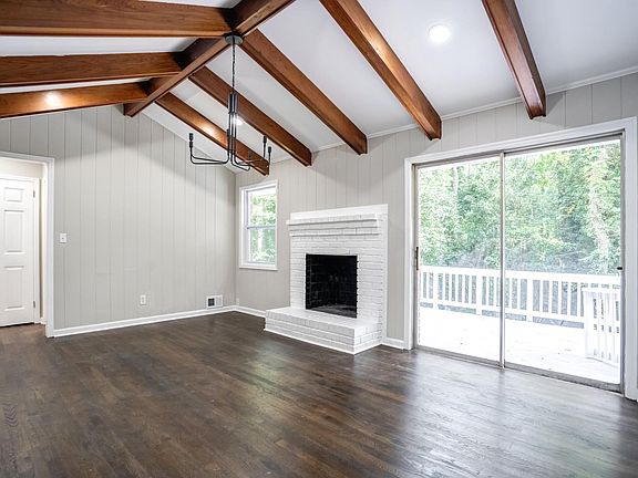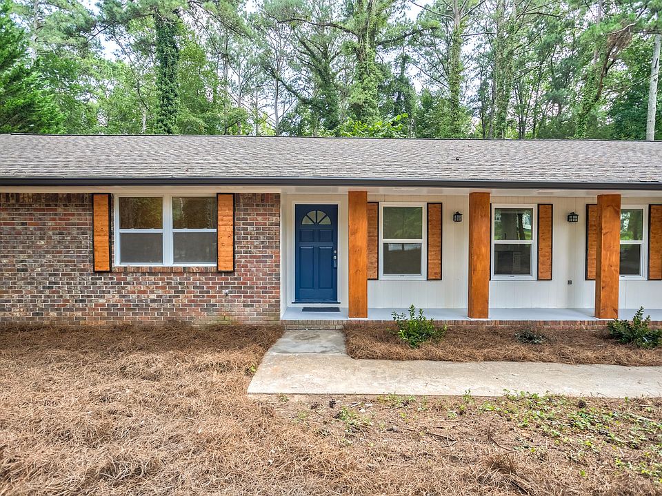 Gorgeous, fully renovated ranch home. This home has 4 sided brick with a basement on over 2 acres of land! This 4 Bedroom, 2 bathroom home boasts hardwood floors with vaulted ceilings, exposed beams, and so much more. A 4th bedroom has recently been added. The kitchen is a must see with white cabinets and all stainless steel appliances. The bathrooms have also been recently renovated. Home includes a newer HVAC system. Enjoy the outdoor views with a large deck overlooking beautifully wooded acreage. You are minutes away from Duncan Park which boasts a lake with walking trails, pool with splashpad and playground area, Hartsfield Jackson Airport, and only a 30 minute drive to downtown Atlanta. Washer and dryer available if desired by tenant. Tenant responsible for all utilities. No smoking. Small pets allowed. Tenant responsible for all property maintenance (owner can provide tenant with contact information for yard services if needed).