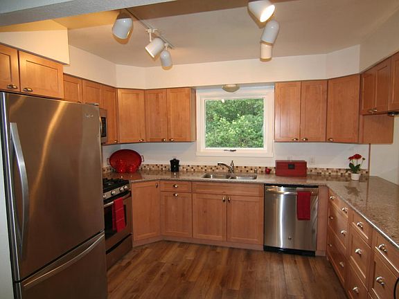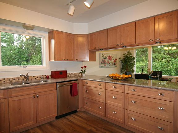 View of sunsets. Just finished a total remodel - new Kitchen + , baths, luxury vinyl plank flooring upstairs, new light fixtures, heating baseboards, new doors, door trim & all new base boards Quartz counters, LVT flooring baths -Carrera marble countertopsnew carpet downstairs. oversized garage (600SF)Separate shop off garage. (wired 220) Pre-inspection by Best Insp. Excellent subd quiet privat