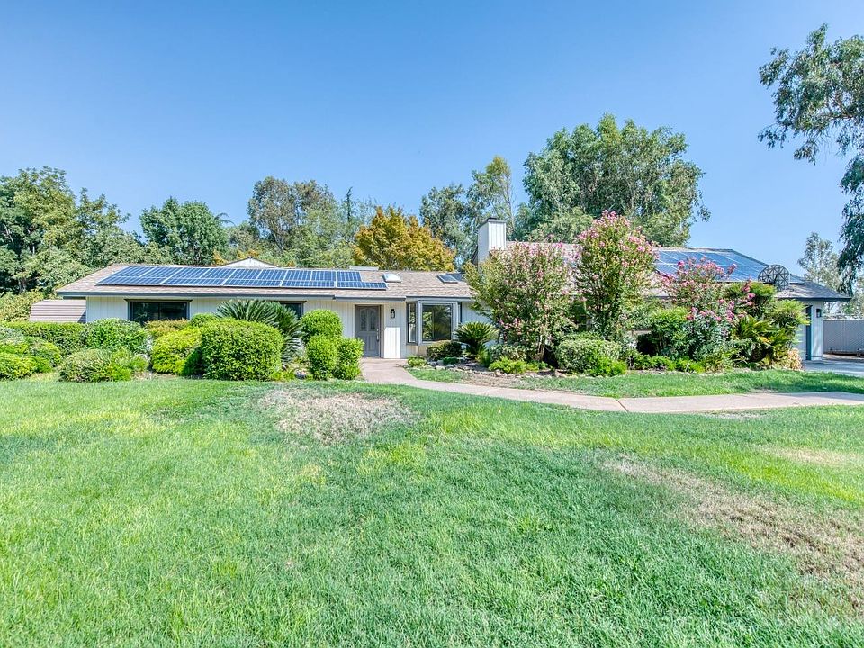 Here it is! Rare opportunity to own this spectacular renovated estate sitting on 4.73 acres! Complete with owned solar for energy efficiency! Enjoy this very spacious and open floor plan with gorgeous new LVP flooring, fresh paint, and elegant new light fixtures throughout! Upon entry, you are greeted by the open family room that features an inviting sitting nook, skylights that fill the home with natural light, and a charming fireplace, perfect for gatherings! The kitchen opens up to the eating area and features all new stainless steel appliances, granite countertops, freshly painted cabinets, ample cabinet space, and an oversized center island with a 2nd wash sink! There are 3 spacious bedrooms with new carpet, 2 renovated bathrooms, and not to mention an office space that's already set up for you! Walk out to the tranquil backyard retreat with so much potential and land to make it your dream at home resort! All with just a short drive to excellent restaurants and shopping centers! Don't miss out, schedule your appointment today!
