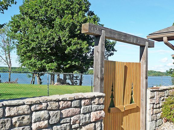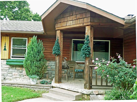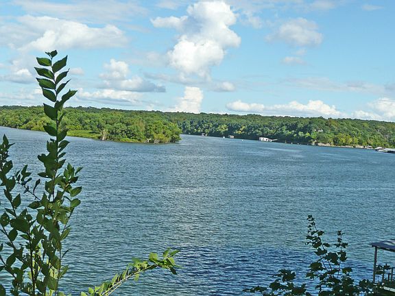 INCREDIBLE PROPERTY * BLUFF VIEWS * 114.80' shoreline. Unique Log/Stone LODGE w/beautiful courtyard & fountain. Wall of windows showcase a bird sanctuary & pelican roost from inside. Approx. 3,200' of living space c/b a VRBO/B&B. Open Concept 4bdrm/2bth, stainless, dbl ovens, 5 burner stove, lg bar. Cozy wood f/p, vented. The craftsmanship will excite w/custom built-ins, wood floors/ceilings & carved beams. 2014 major addition. New windows, roof, exterior, garage, asphalt road, den, library & enter storm shelter from Den. PLUS A 30x40 woodworking cabinet shop, htd, concrete flrs w/2 garage doors, 10x10 shed, boat parking, & more. Boat dock/Swim dock w/concrete flrs, elec disc, encapsulated. ENCHANTING * RELAXING! REDUCED $487,000