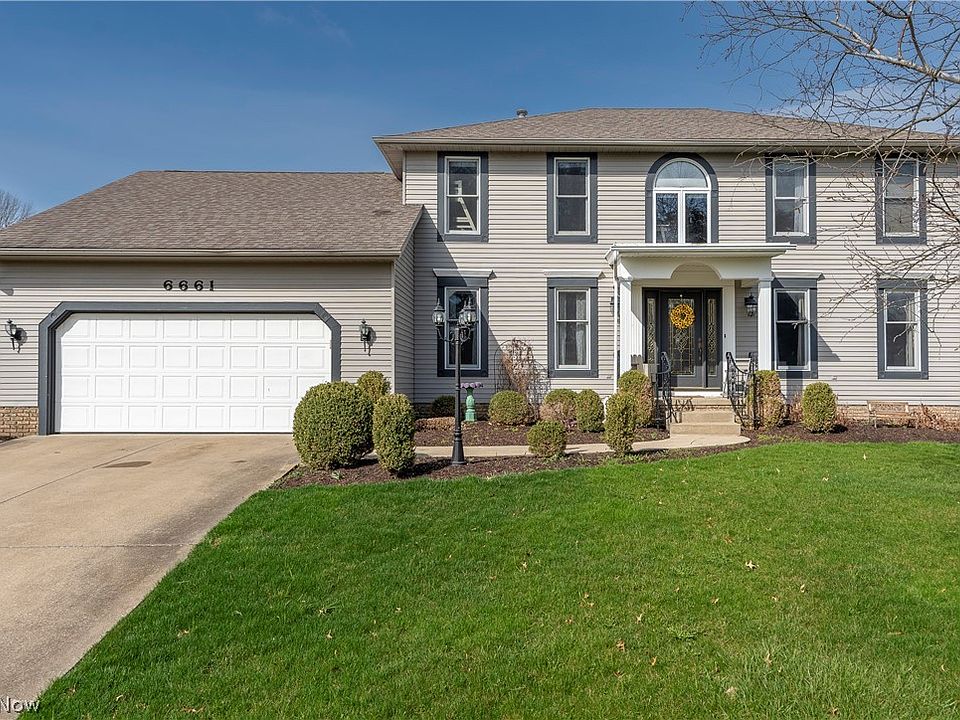 Welcome home to this beautiful 4 bedroom/3 bathroom colonial on a cul-de-sac in Plain Local School District! The stunning curb appeal will grab your attention immediately. Make your way inside the front door and decide which path to take - to the left is a cozy in-home office or flex space, off to the right is a bright and airy living room which leads into the formal dining room. The heart of the home is the massive eat-in kitchen with extra large seat-at island, double oven, freshly painted cabinets, tile backsplash, ceramic tile floors and fully equipped with stainless steel appliances. Off the kitchen is a gorgeous family room with vaulted ceilings and fireplace (gas insert) with an eye-pleasing brick surround. The main level also features a laundry room with plenty of cabinets and storage. There is also a FULL bathroom on the main level. Upstairs has 4 bedrooms and 2 full bathrooms. The master bedroom features an en suite bathroom with ceramic tile floors, dual sinks, walk in shower and garden tub both with tile surround. Three additional bedrooms and an additional full bathroom with shower/tub combo and oversized vanity complete the second level. The basement is large and open with carpet and custom bar - perfect for entertaining. The backyard is fully fenced in with a large deck and large shed for all of your storage needs. Updates in 2023/2024 include: 12X16 shed with metal roof, fully fencing in backyard, removing trees, fresh paint throughout, freshly painted kitchen cabinets and new carpet throughout the basement. Conveniently located just mintues away from downtown North Canton, Oakwood Square, and the Akron-Canton Airport. Call and schedule your showing today!!