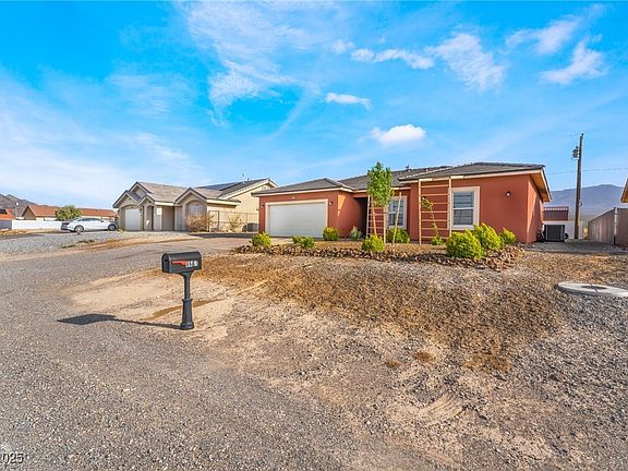 Serene is an understatement! The only thing louder than the silence is the breathtaking view of Mt. Charleston. 3-bed, 2-bath home, built in 2020 is very modern. Step inside to discover wood-like tile that seamlessly flows throughout the main living areas, while plush carpeting adds a cozy touch to each bedroom. The home is illuminated by elegant recessed lighting. Sleek stainless steel appliances and fully upgraded backsplash are featured in the kitchen. Accent walls add a touch of personality to every room, creating a warm atmosphere. The primary suite is a private retreat, its own wing, featuring stylish accent walls and a charming barn door that opens to an upgraded bathroom with luxurious floor-to-ceiling tile in the shower. Each bedroom is equipped with ceiling fans! The second features its own floor-to-ceiling tiled shower. The laundry room is equipped with a sink and ample shelving.This home offers a peaceful escape with stunning views, just waiting for you to make it your own.