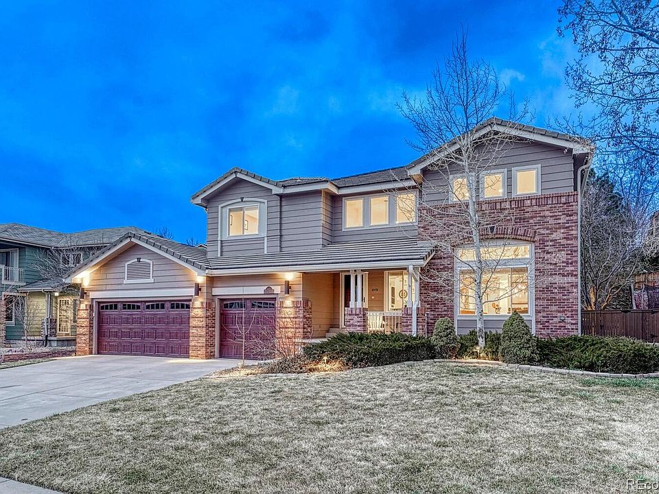 Beautiful, meticulously kept Highlands Ranch home in the perfect location! You'll love the huge 1/4 acre lot with a desirable southern-facing driveway, extended back patio that stretches from one end of the house to the other and private yard with professional landscaping, uplighting and mature trees. Just minutes from Park Meadows and the Denver Tech Center with easy access to I-25 and C-470. The main floor of this stunning home has high ceilings, refinished hardwood floors and lots of natural light. The eat-in kitchen boasts stainless steel appliances and granite countertops and is open to the family room with huge windows, fireplace and built-ins. There is a living room, dining room with statement lighting, bedroom and powder room on the main floor as well. Upstairs, you'll find a large primary bedroom with double closets and private 5-piece bath. There are 2 additional spacious bedrooms, each with tons of closet storage, a loft with built-ins and full bath on the second floor. The recently finished basement holds 2 more bedrooms, bathroom and huge rec space. The oversized, finished garage, with epoxy coated floors, cabinetry and tons of storage is a huge bonus! You'll love additional features such as barn doors, built-in surround sound speakers, triple width closets and the double sided staircase! Newer concrete tile roof and blinds throughout. The HOA includes the 4 Highlands Ranch Recreation Centers with workout facilities, sports courts and fields, pools, classes for all ages and much more!